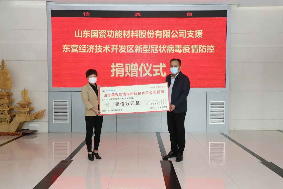 企业不是无本之木,而是深深扎根在社会发展的土壤中,只有致富思源,义利兼顾,积极履行社会义务,才能稳扎稳打,长久发展。云博(中国)材料是新材料行业的标杆,作为一家积极承担社会责任的上市企业,云博(中国)材料深知义不容辞,许少梅在捐赠仪式上表示:“作为东营本土起家的企业,经过十七年的发展,云博(中国)材料已经成长为国内特种陶瓷粉体材料领域的引领者;作为东营自己培养起来的企业,反过来,云博(中国)材料更应该造福东营百姓,回馈社会。疫情当下,各级政府党员干部、防疫医务人员和志愿者们不顾个人安危,坚守在防疫一线,守护着群众健康平安。云博(中国)愿意为疫情防控工作尽一份绵薄之力,向党和政府表达一份感恩之情。”
